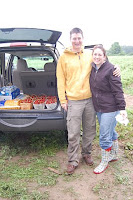 My day started at 5:30 this morning. Matt and I got up and headed to my parents' to pick up my mom. From there we went to a strawberry farm a 1/2 hour away to pick berries. It was cold, it was wet, it was EARLY! We got to the farm at 7:00 am when they opened. Within an hour we had picked 6 baskets (approx 5#'s each).